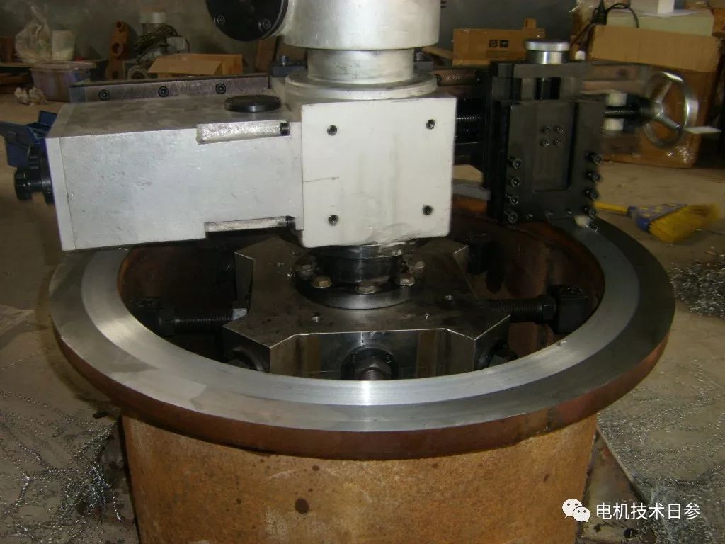 現(xiàn)場(chǎng)跟蹤技術(shù)員小L說(shuō),為了解決電機(jī)停機(jī)時(shí)間不一致的問(wèn)題,他試圖用手去感知其中的奧秘。經(jīng)過(guò)一上午的研究,初步確定可能與機(jī)座加工有關(guān)。轉(zhuǎn)子拉出后,將定子牢固地固定在立式車(chē)床上,以檢測(cè)底座槽口跳動(dòng)。果然水平方向和垂直方向不一致,應(yīng)該是應(yīng)力釋放導(dǎo)致的變形。