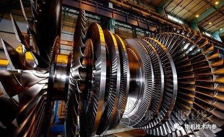 汽輪發(fā)電機(汽輪機和發(fā)電機)和以上所討論的電機一樣,都是臥式電機。有內(nèi)部旋轉(zhuǎn)圓柱形的(隱極式的)磁極,軸承往往裝在托架上,和定子有足夠的距離以容納端蓋,后者使空氣能通到發(fā)電機的端部。