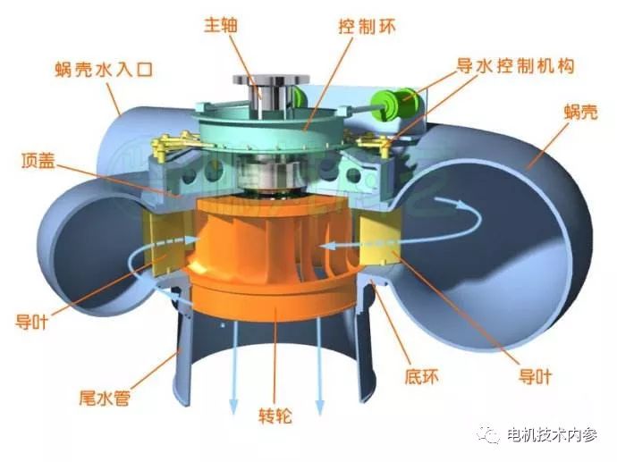 水輪發(fā)電機之結(jié)構(gòu)及安裝方法決定于水輪機之型式。根據(jù)水力資源開發(fā)的情況,水輪機選用三種型式之一:沖擊式、軸流輻流式或旋漿式。種用于高水頭設(shè)備,第二種用于中等水頭,而旋漿式用于利用的水流對水平面落差小的情況。