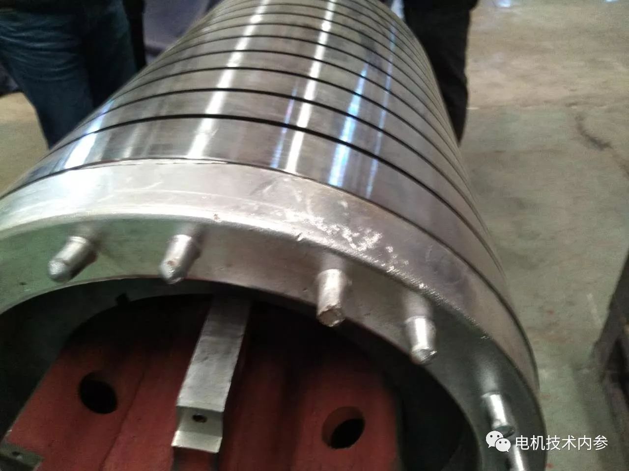 由于定、轉(zhuǎn)子鐵芯不對(duì)中,電機(jī)通電后定、轉(zhuǎn)子會(huì)自動(dòng)調(diào)整磁中心線,導(dǎo)致電機(jī)轉(zhuǎn)子軸向機(jī)械位置周期性擺動(dòng),電機(jī)軸承潤滑脂流失,軸承干磨、燒損、分崩離析,導(dǎo)致電機(jī)軸鎖死、燒損。